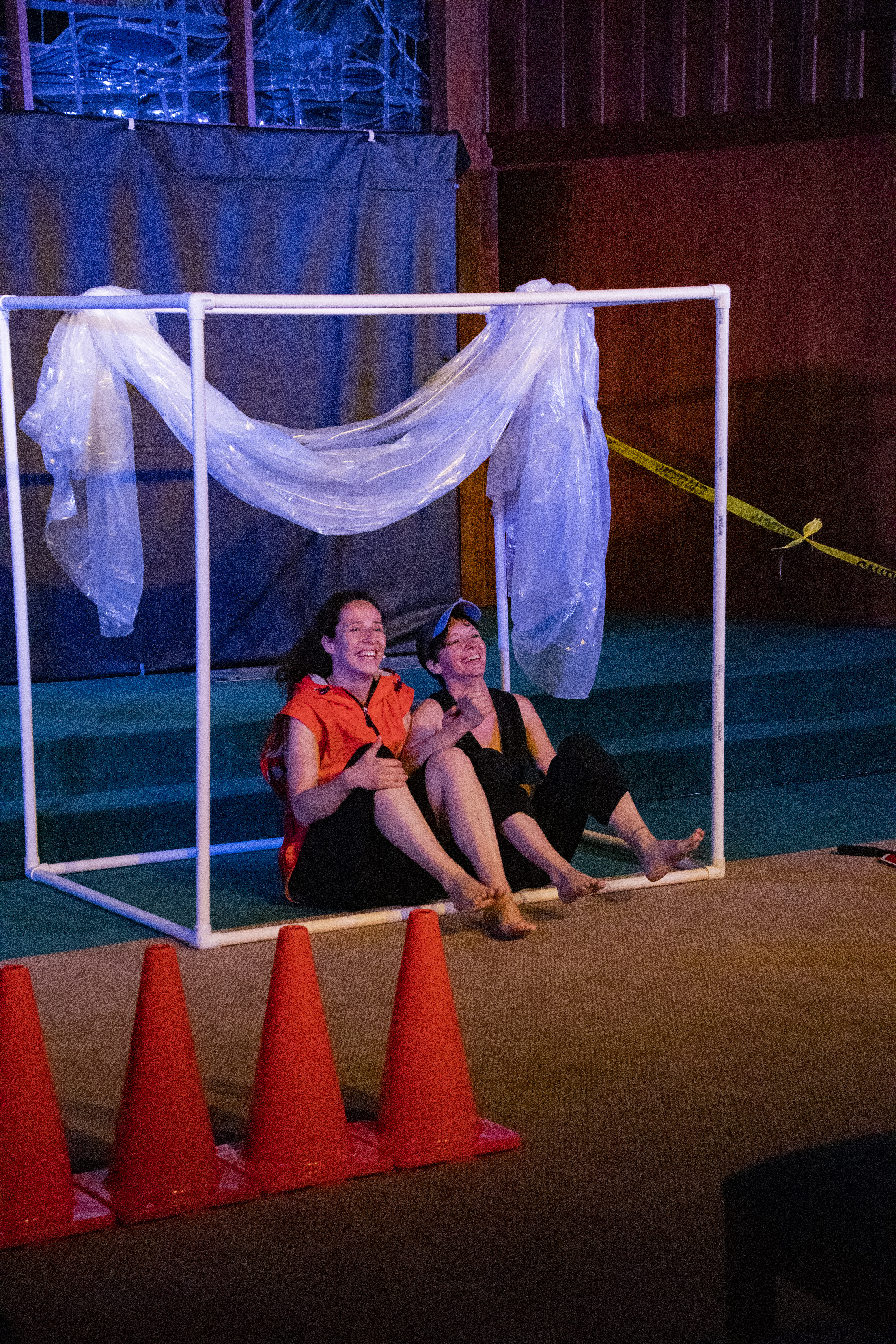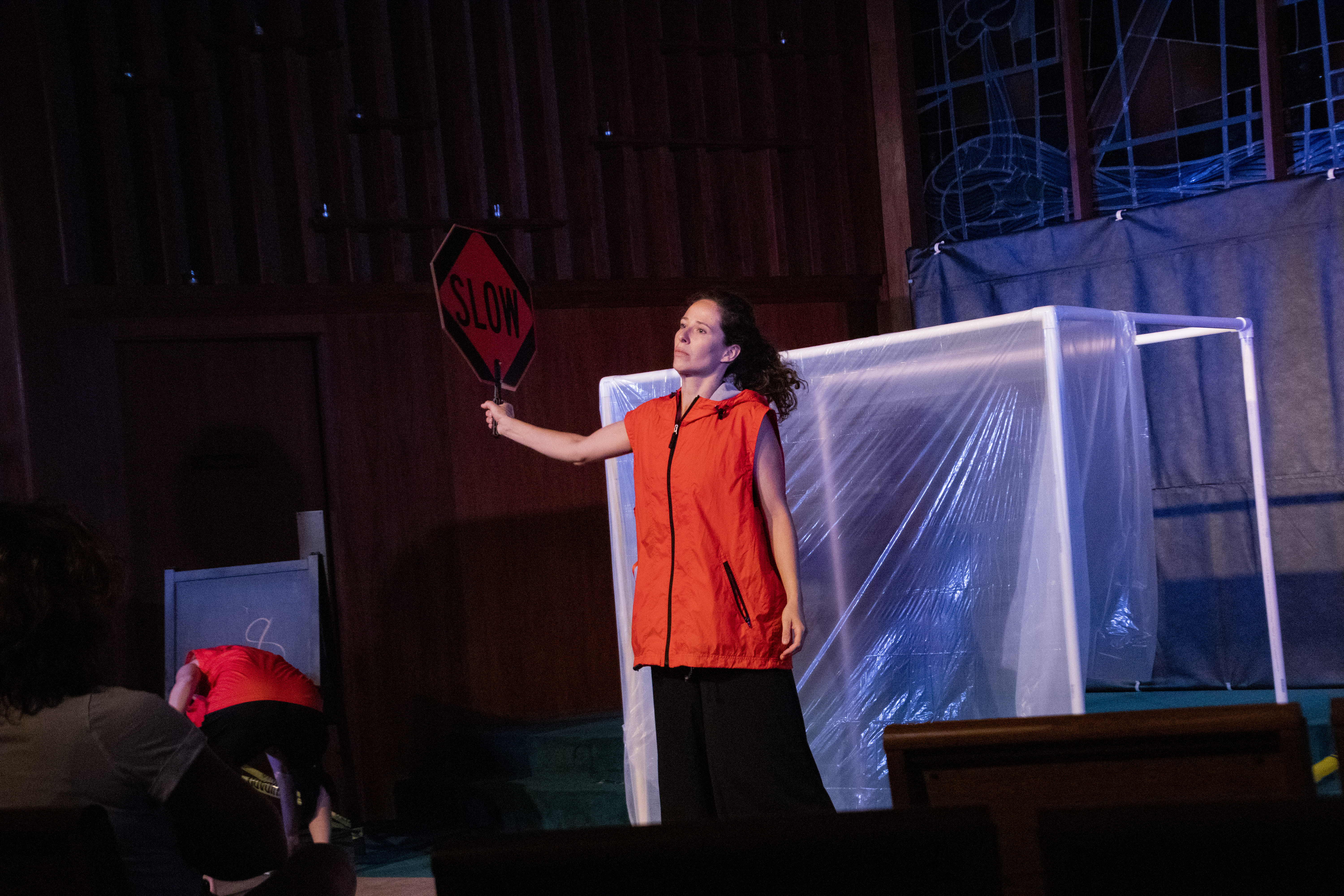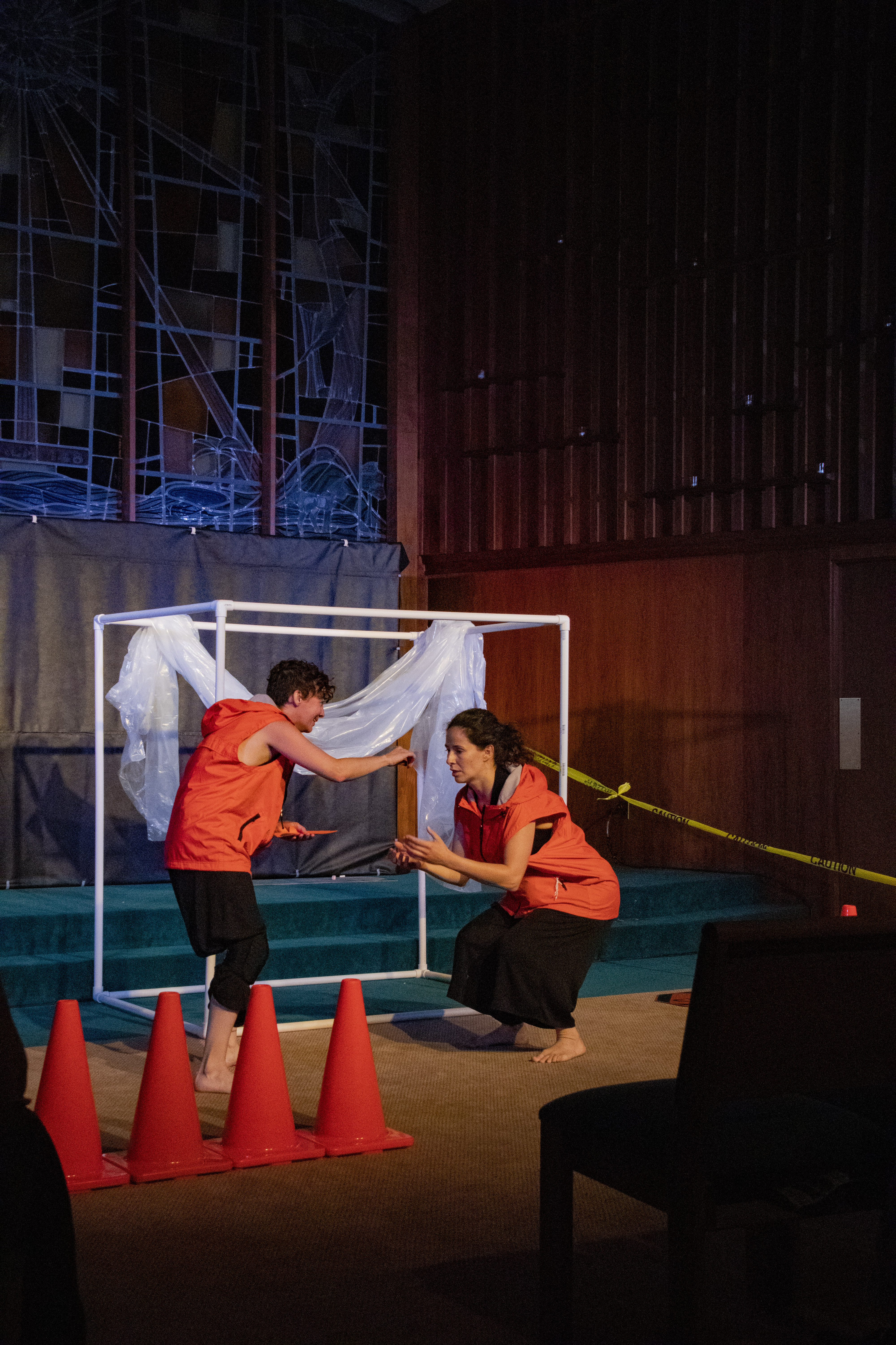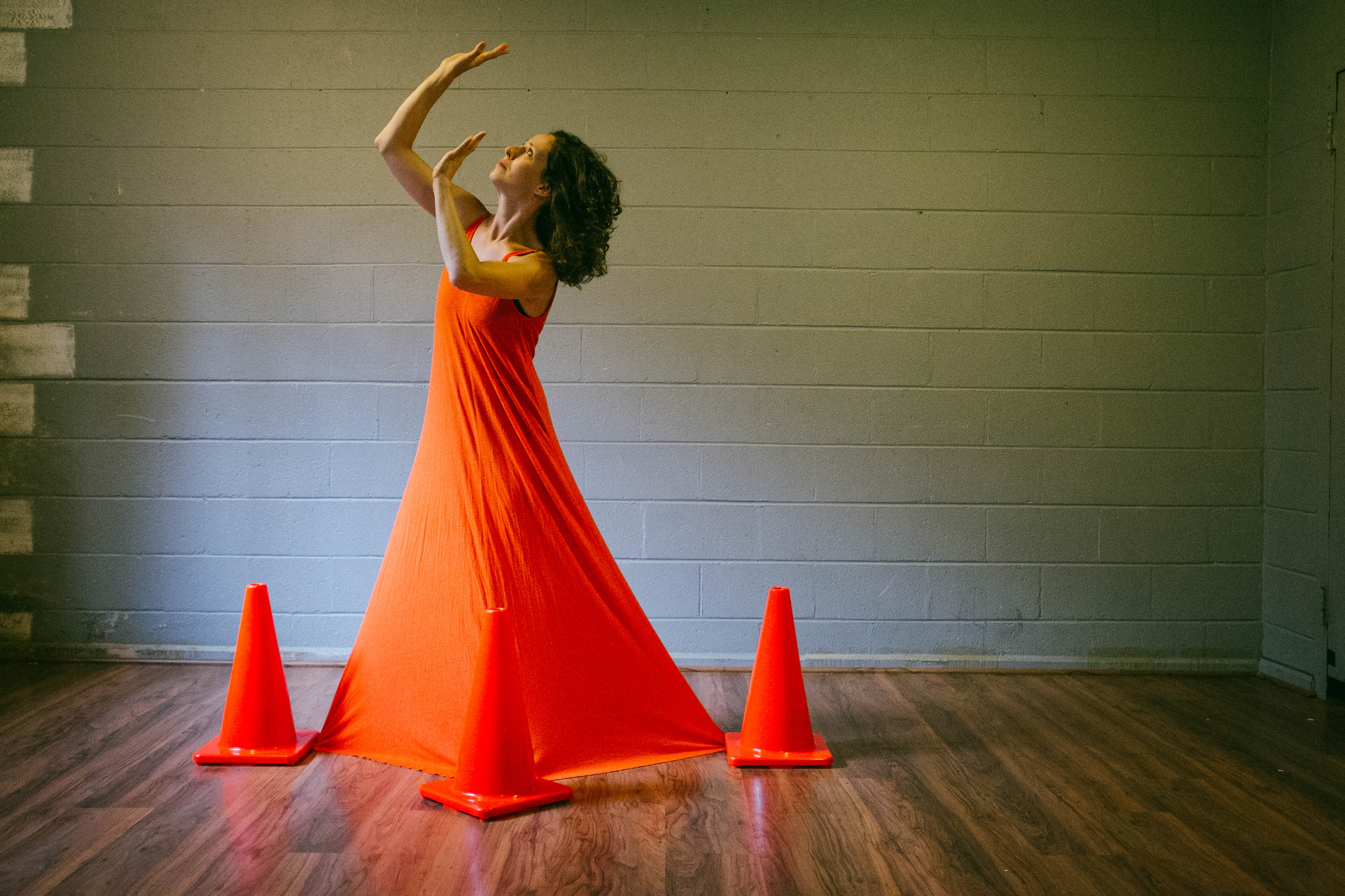 Inspired by Sophocles’ Antigone, AntiCone is the largely wordless story of an immigrant who is put to work building a wall against her country of origin (and, therefore, her brothers), under the dangerous eye of new leader, Creon, and against the pull of her ancient namesake. Scored by the evocative and visceral original music of Alexander Nikitin, the play combines physical theatre, clowning, and audience interaction, with unique, powerful dances choreographed and performed by Moscow-trained Natasha Mirny as Antigone. Tia Shearer, who has been called one of DC’s “most versatile actors” (BroadwayWorld) and a “straight up chameleon” (DC Theatre Scene), plays the five characters surrounding Antigone, including Creon, her brother, and the Chorus. The team is rounded out by stage manager Jennifer Arezzo, and 25 bright orange traffic cones. AntiCone was awarded funding through the Montgomery County government and the Arts and Humanities Council of Montgomery County for its premiere just outside Washington, DC last fall. The show is recommended for ages 13 and up.